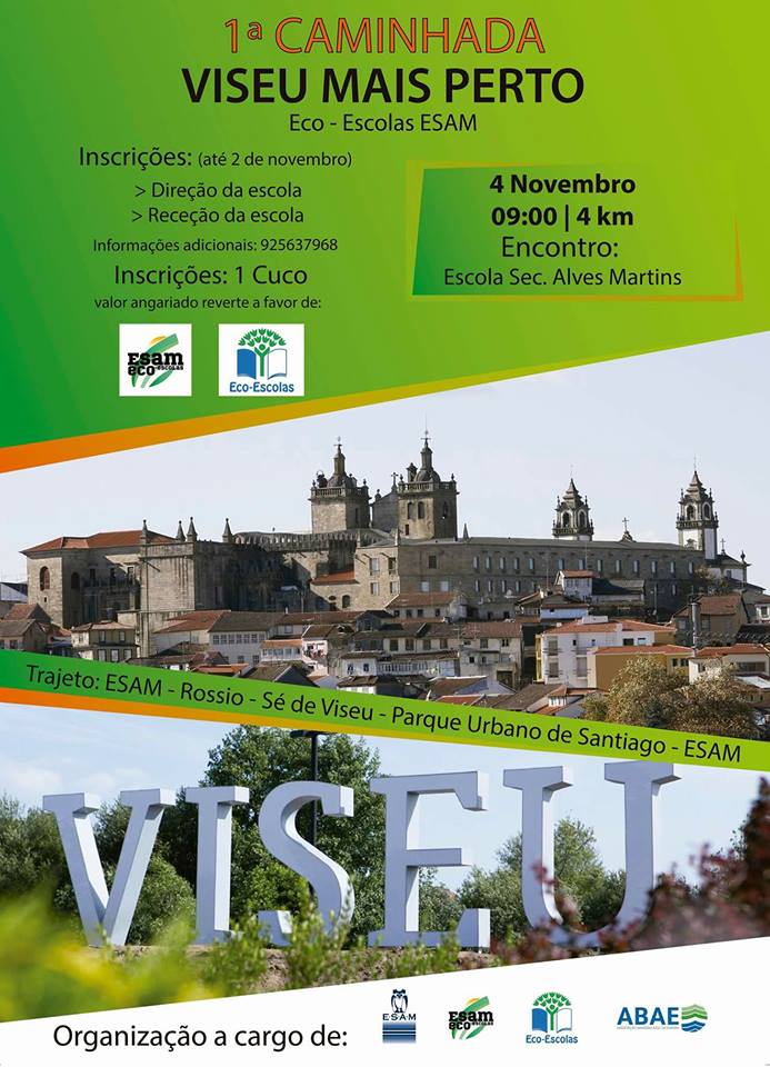 Pelas 9h00 no ponto de encontro: Escola Secundária Alves Martins, será dada a partida a uma caminhada de 4 KM. O trajeto planeado será: ESAM - Rossio - Sé de Viseu - Parque Urbano de Santiago - ESAM.